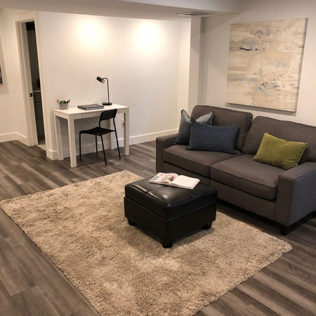 Construction took eight months to complete. The end result was a modern 3,424 square foot home with 4 bedrooms, 5 full baths, a 2-car garage, professional quality appliances, custom cabinets with quartz countertops, custom finishes throughout and 3 high efficiency HVAC systems. The final sale price was $1,615,000.