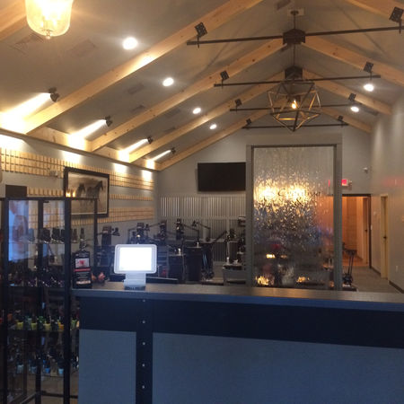 The space was originally occupied by a large real estate company and had a ceiling height of only 9'. This made it very difficult to create the cathedral ceiling that the owners desired. We began the construction by removing all of the existing interior partitions, suspended ceilings, plumbing systems, and electrical systems. We then removed the entire existing roof and framing over the new space and added a new roof and ceiling system. This created a new vaulted 16’ high cathedral ceiling area, which was exactly what the owners wanted. The renovated interior includes a lower level spa and first floor nail salon with customized architectural details.